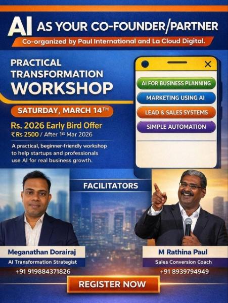 AI as Your Co-Founder – நடைமுறை தொழில் பயிற்சி பட்டறை!