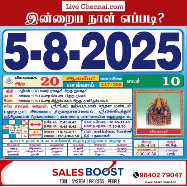 August 5, 2025 – Tuesday | Aadi 20 | Visuvavasu Year | |||