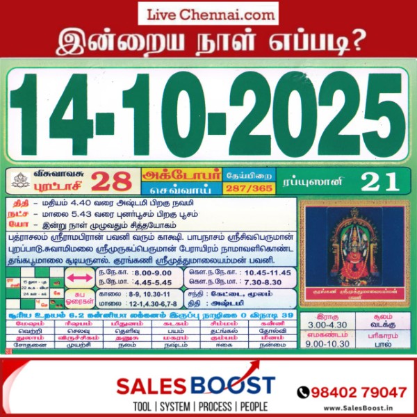 October 14, 2025 – Tuesday | Purattaasi 28 | Visuvavasu Year