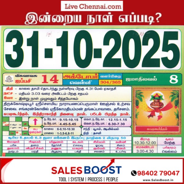 October 31, 2025 – Friday | Aippasi 14 | Visuvavasu Year