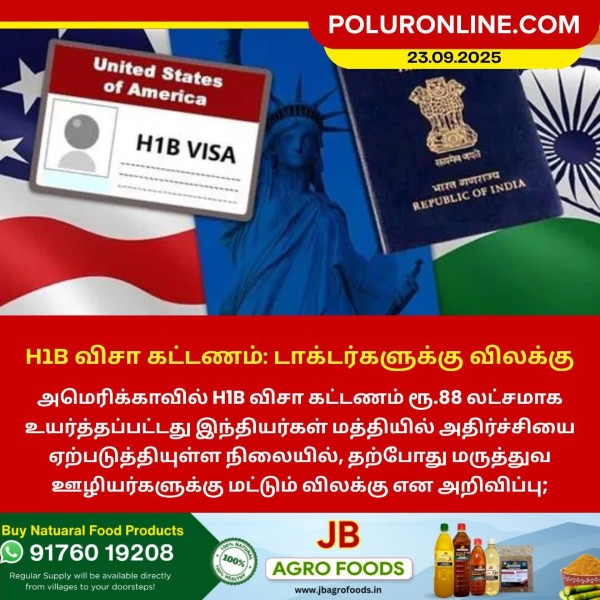 அமெரிக்காவில் H1B விசா கட்டணம் ரூ.88 லட்சமாக உயர்த்தப்பட்டது இந்தியர்கள் மத்தியில் அதிர்ச்சியை ஏற்படுத்தியுள்ள நிலையில், தற்போது மருத்துவ ஊழியர்களுக்கு மட்டும் விலக்கு என அறிவித்துள்ளது.