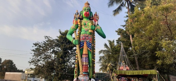 போளூரில் அனுமன் ஜெயந்தியையொட்டி முன்னிட்டு ஸ்ரீ ராமபக்த ஆஞ்சநேயர் ஆலயத்தில் 45 அடி உயரமுள்ள ஆஞ்சநேயர் சிலைக்கு கிரேன் மூலம் வடமலை,சாத்துக்கொடி மாலை, துளசி மாலைகள் அணிவிக்கப்பட்டது.