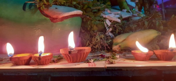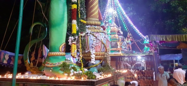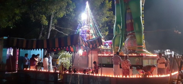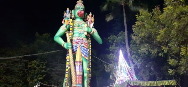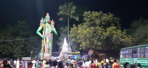 ஆஞ்சநேயர் கோவிலைச் சுற்றி அகல் விளக்கு தீபங்களை ஏற்றி பக்தர்கள் நீண்ட வரிசையில் நின்று ஆஞ்சநேயரை வழிபட்டார்கள்