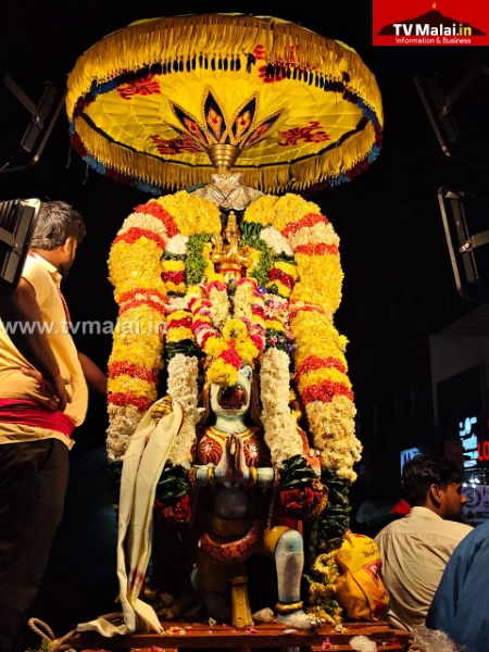 நினைத்தாலே முக்தி தரும் திருவண்ணாமலை கார்த்திகை தீபத்திருவிழா அருள்மிகு அருணாசலேசுவரர் திருக்கோயில் பத்தாம் நாள் இரவு நேற்று (05.12.2025) பஞ்சமூர்த்திகள்- தங்க ரிஷப வாகனத்தில் காட்சியளித்தார்.