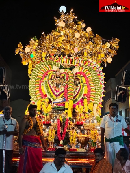 திருவண்ணாமலை அண்ணாமலையார் திருக்கோயிலில் திருக்கார்த்திகை தீபத்திருவிழா நான்காம் நாளான நேற்று (27.11.2025) இரவு பஞ்ச மூர்த்திகளான  விநாயகர் வெள்ளி மூஷிக வாகனத்திலும், வள்ளி தெய்வானையுடன் சுப்பிரமணியர் வெள்ளி மயில் வாகனத்திலும், உண்ணாமலை அம்மன் சமேத அருணாசலேஸ்வரர், கற்பக விருட்சம் வாகனத்திலும், பராசக்தி அம்மன் வெள்ளி காமதேனு வாகனத்திலும், சண்டிகேஸ்வரர் வெள்ளி ரிஷப வாகனத்திலும், மாட வீதி உலா வந்து பக்தர்களுக்கு அருள்பாலித்தார்கள்.