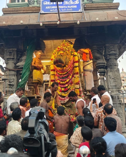 திருவண்ணாமலையில் அருணாச்சலேஸ்வரர் திருக்கோவிலில் நேற்று (16-03-2026) பங்குனி மாத அமாவாசை பிரதோஷத்தை முன்னிட்டு நந்தி பகவானுக்கு சிறப்பு அபிஷேக ஆராதனை நடைபெற்றது. இதில் திரளான பக்தர்கள் கலந்து கொண்டு அரோகரா கோஷத்துடன் தரிசனம் செய்தார்கள்.