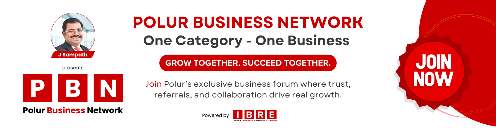 Polur Business Network is powered by IBRE (Indian Business Referrals Exchange), bringing proven networking methods and referral systems to help members achieve consistent business growth.