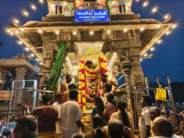 திருவண்ணாமலையில் அருணாச்சலேஸ்வரர் திருக்கோவிலில் புரட்டாசி மாத பௌர்ணமி சனிபிரதோஷத்தை முன்னிட்டு நந்தி பகவானுக்கு சிறப்பு அபிஷேக ஆராதனை நடைபெற்றது. இதில் திரளான பக்தர்கள் கலந்து கொண்டு அரோகரா கோஷத்துடன் தரிசனம் செய்தார்கள்.