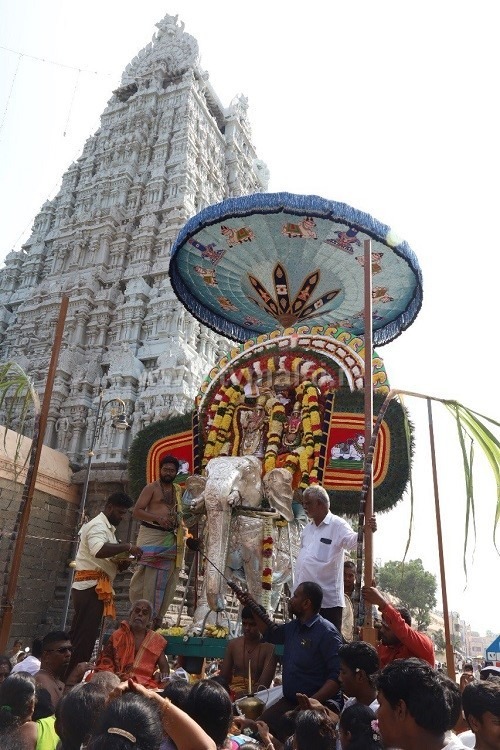 தீபத் திருவிழா ஆறாம் நாள், இன்று காலை வெள்ளி யானையில் சந்திரசேகரர் மாடவீதி உலா. 63 நாயன்மார்கள் உற்சவ மூர்த்திகளாக தனித்தனி வாகனங்களில் மாட வீதி வலம் வந்து பக்தர்களுக்கு அருள்பாலித்தார். இதில் ஏராளமான பக்தர்கள் கலந்து கொண்டு சாமி தரிசனம் செய்தனர்.