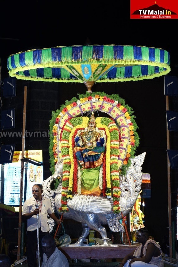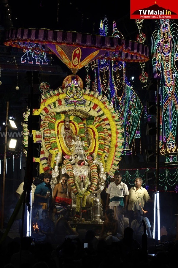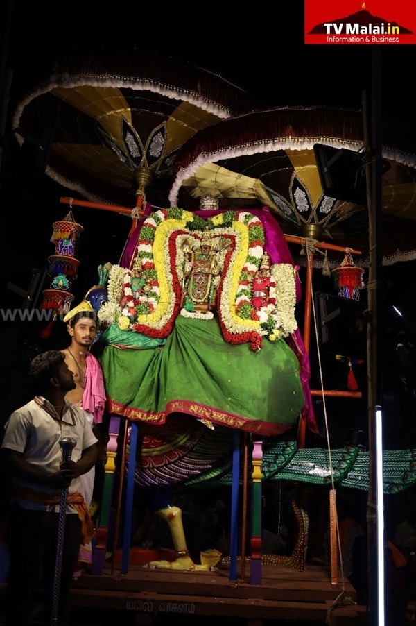 திருவண்ணாமலை அருள்மிகு அருணாசலேஸ்வரர் திருக்கோவில் திருக்கார்த்திகை தீபத் திருவிழா முதல் நாளான நேற்று (04.12.2024) விநாயகர்- மூஷிக வாகனத்திலும், சுப்பிரமணியர்- மயில் வாகனத்திலும், அண்ணாமலையார் – வெள்ளி அதிகார நந்தி வாகனத்திலும், அம்மன் – வெள்ளி அன்ன வாகனத்திலும், சண்டிகேஸ்வரர்- அதிகார நந்தி வாகனத்திலும் எழுந்தருளி மாட வீதி உலா வந்து பக்தர்களுக்கு அருள்பாலித்தார்.
